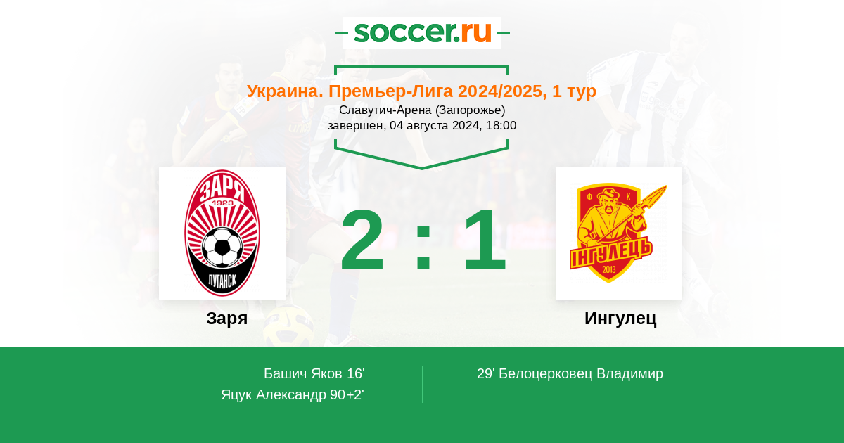 Протокол матча Заря против Ингулец