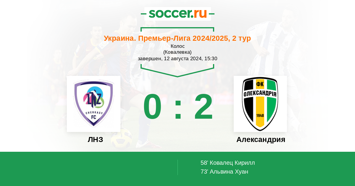 Протокол матча ЛНЗ против Александрия