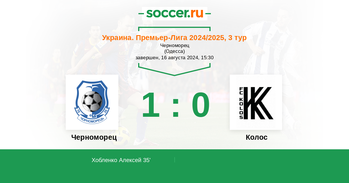 Протокол матча Черноморец против Колос
