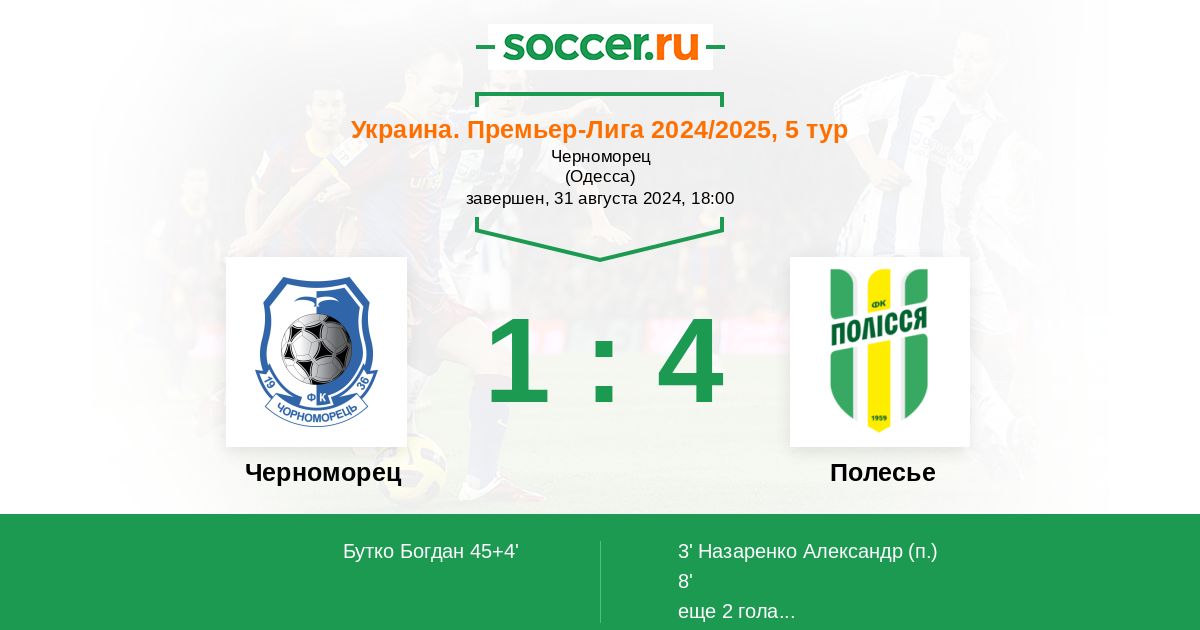 Протокол матча Черноморец против Полесье