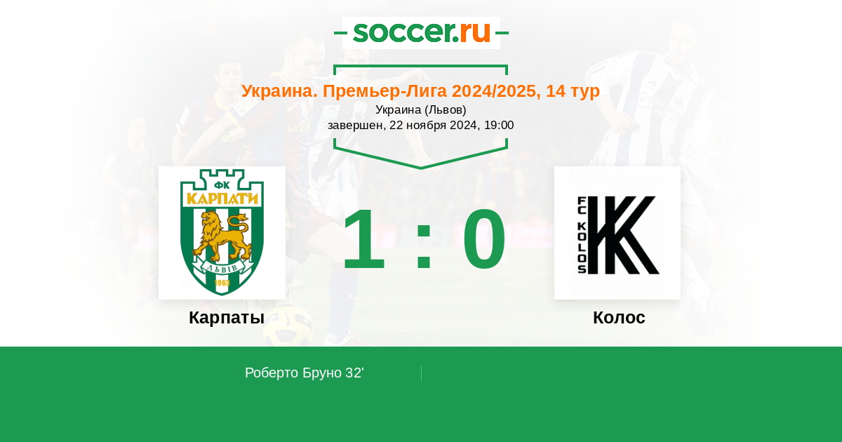 Протокол матча Карпаты против Колос