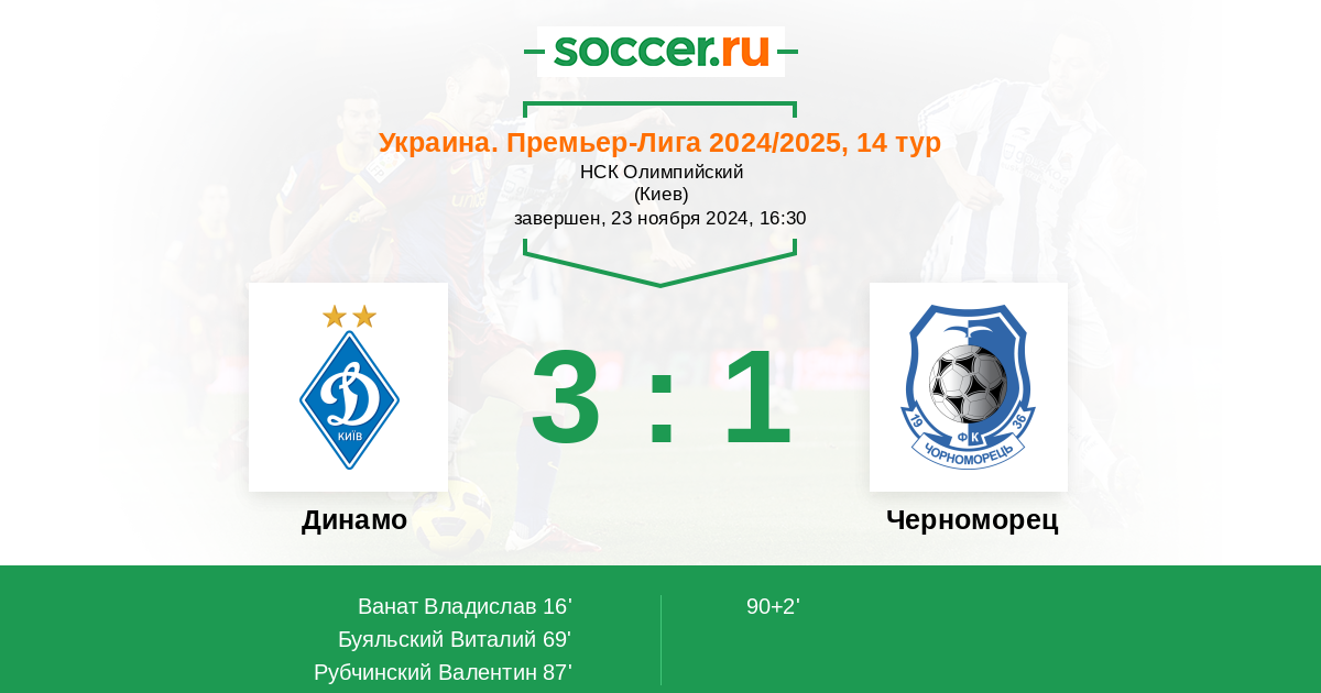Протокол матча Динамо против Черноморец