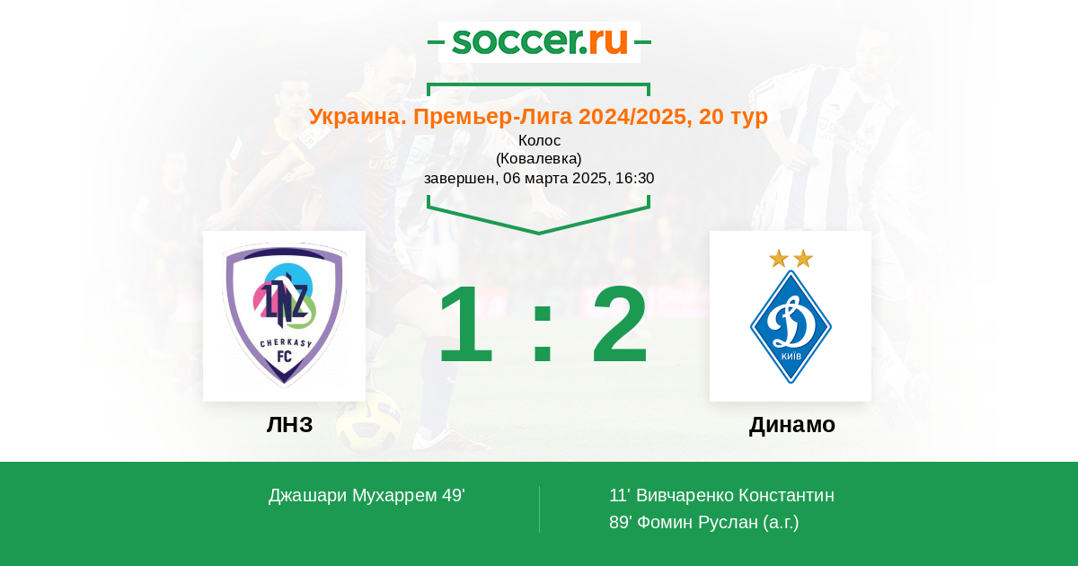 89' (1:2) Автогол Фомин Руслан
