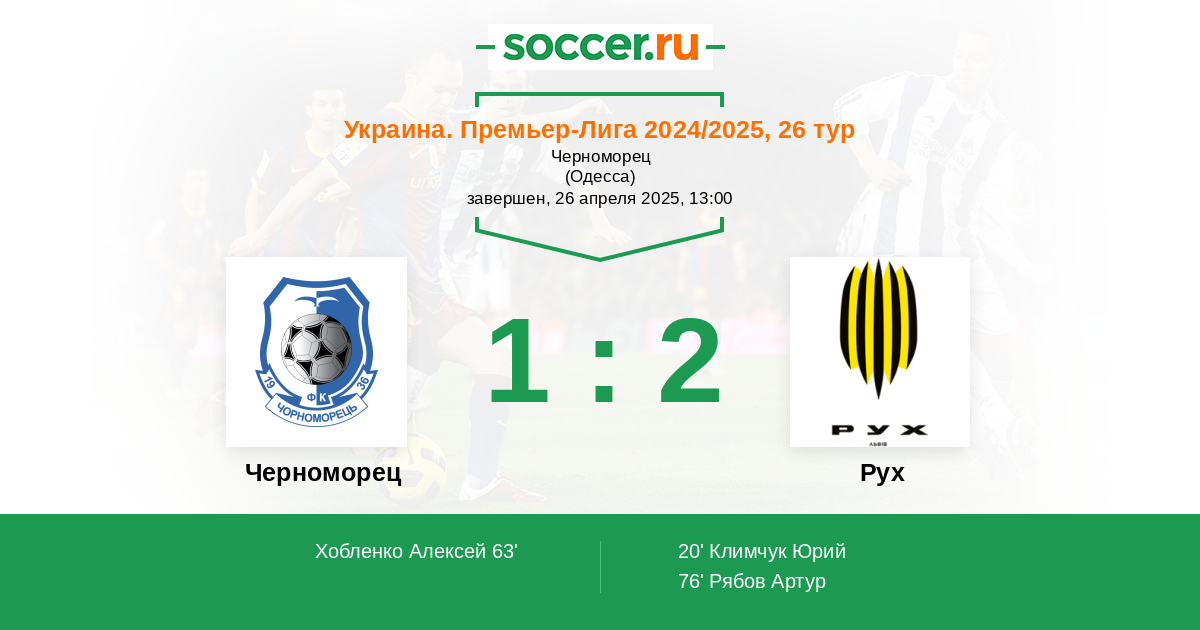 Протокол матча Черноморец против Рух