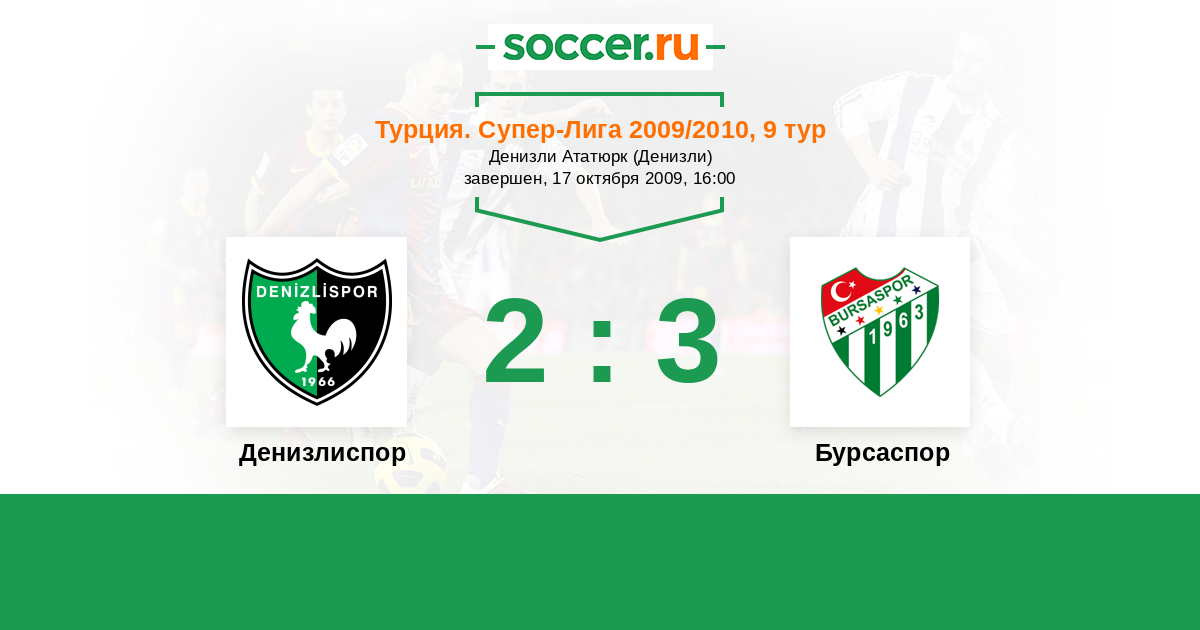 Турция. Суперлига 22.03.2010 Бурсаспор Логотип футбольный клуб Бурсаспор 2:1 Логотип футбольный клуб Денизлиспор Денизлиспор