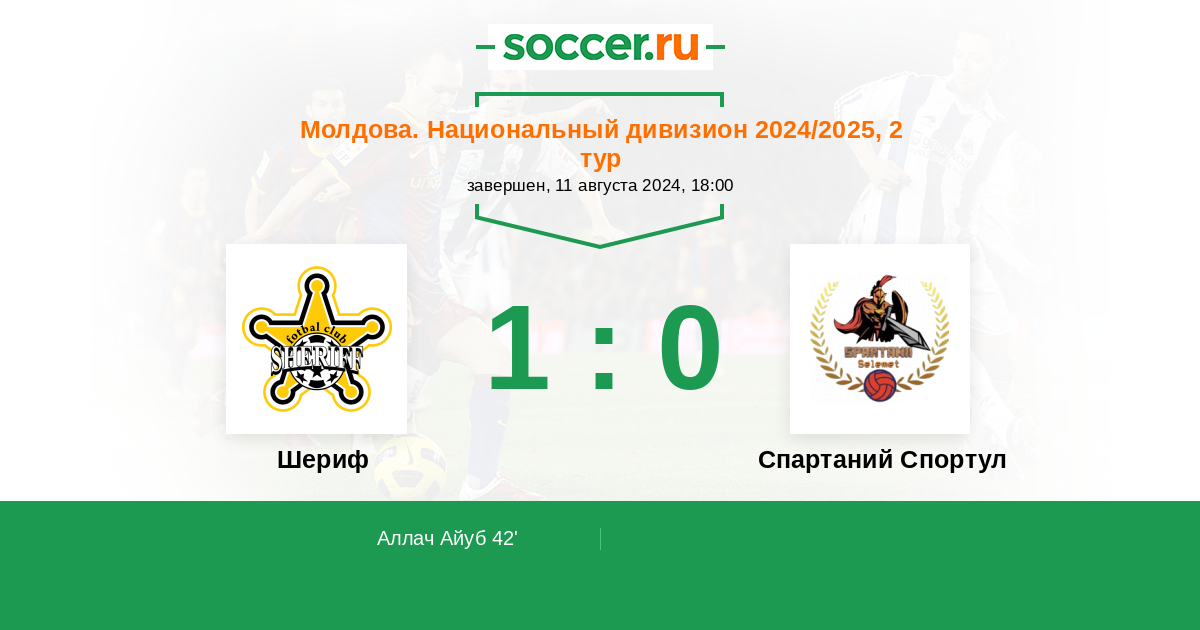 Протокол матча Шериф против Спартаний Спортул