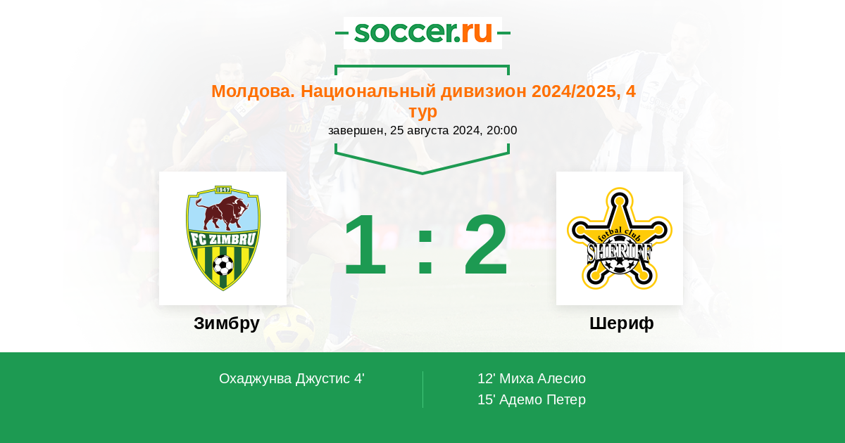 Протокол матча Зимбру против Шериф