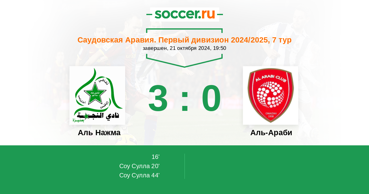 Протокол матча Аль Нажма против Аль-Араби