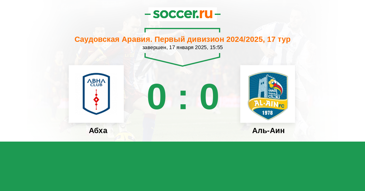 Футбольные команды Абха - Аль Айн ФК всего сыграли между собой 4 матча. За 4 команде Абха удалось выиграть оппонента в 2 матчах, а футбольный клуб Аль Айн ФК в свою очередь одержал 0 побед. По результатам личных встреч двух клубов Абха - Аль Айн ФК, команды сыграли вничью 2 матчей. Последний матч в истории противостояний клубов прошел 15.04.21, и закончился со счетом 1:0. По результатам всех 4 сыгранных матчей разница голов команд составляет - 6-3.