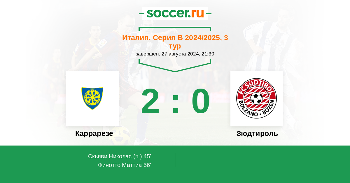 56' (2:0) Финотто Маттиа (32) (Дзанон Симоне (72))