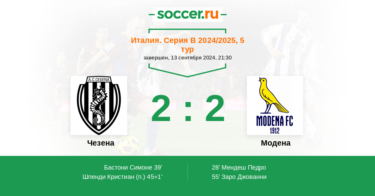 Протокол матча Чезена против Модена