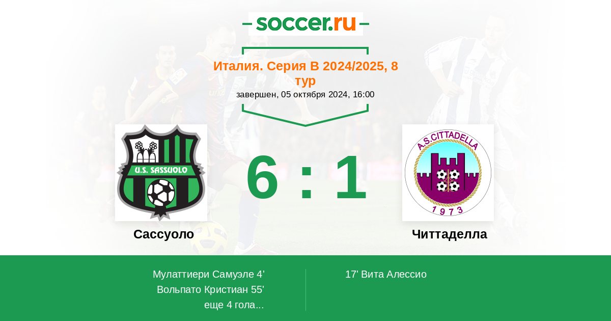 Протокол матча Сассуоло против Читтаделла