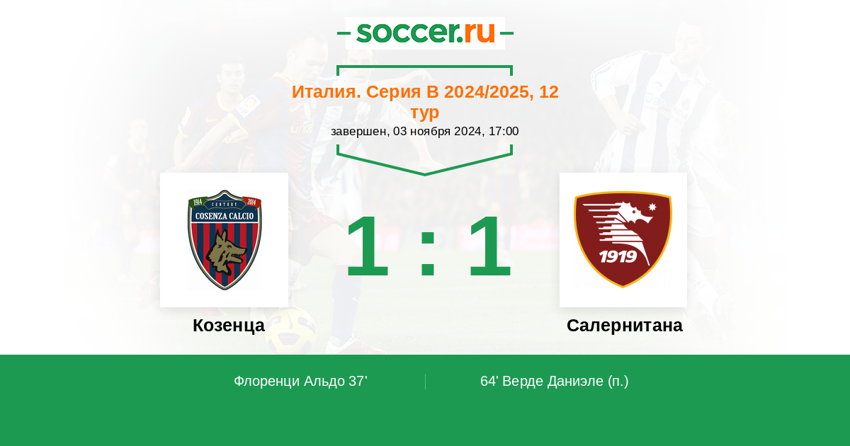 Протокол матча Козенца против Салернитана