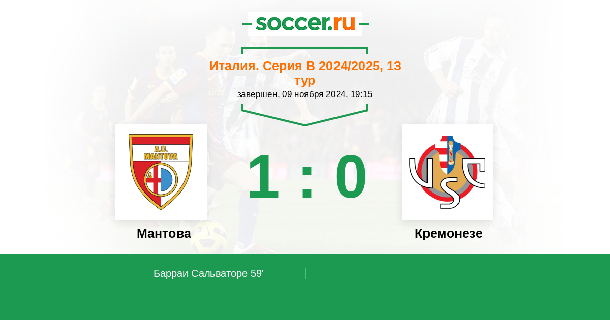 Протокол матча Мантова против Кремонезе