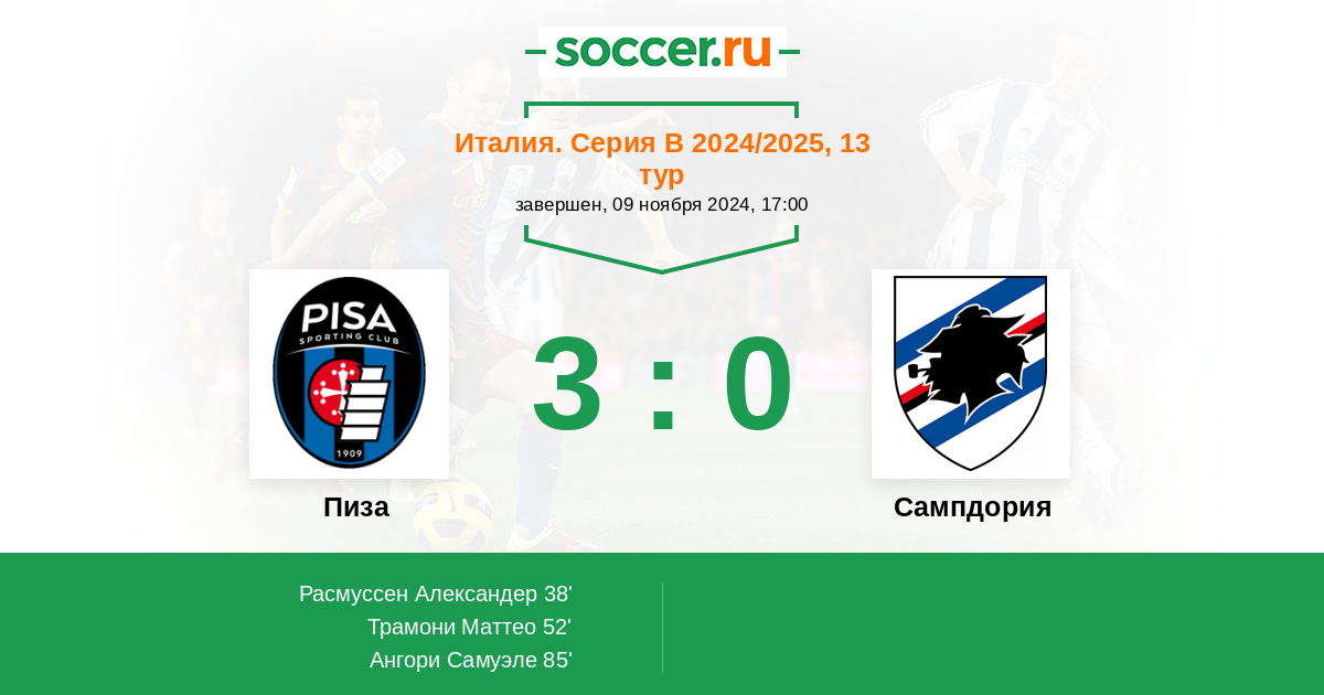 Протокол матча Пиза против Сампдория