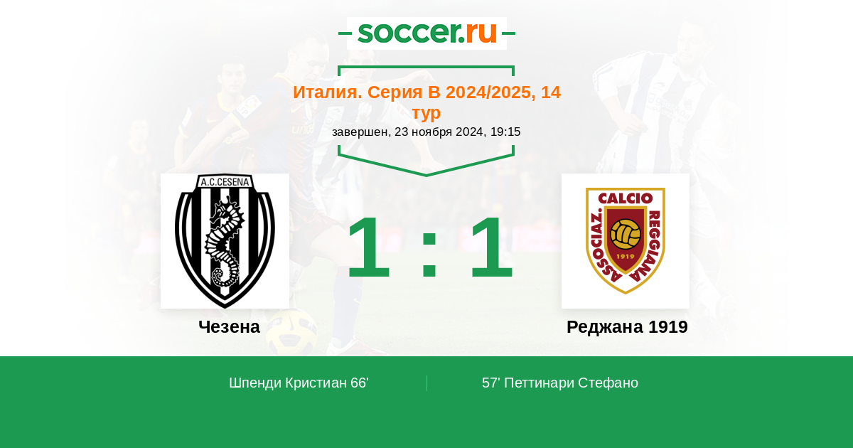 Протокол матча Чезена против Реджана 1919