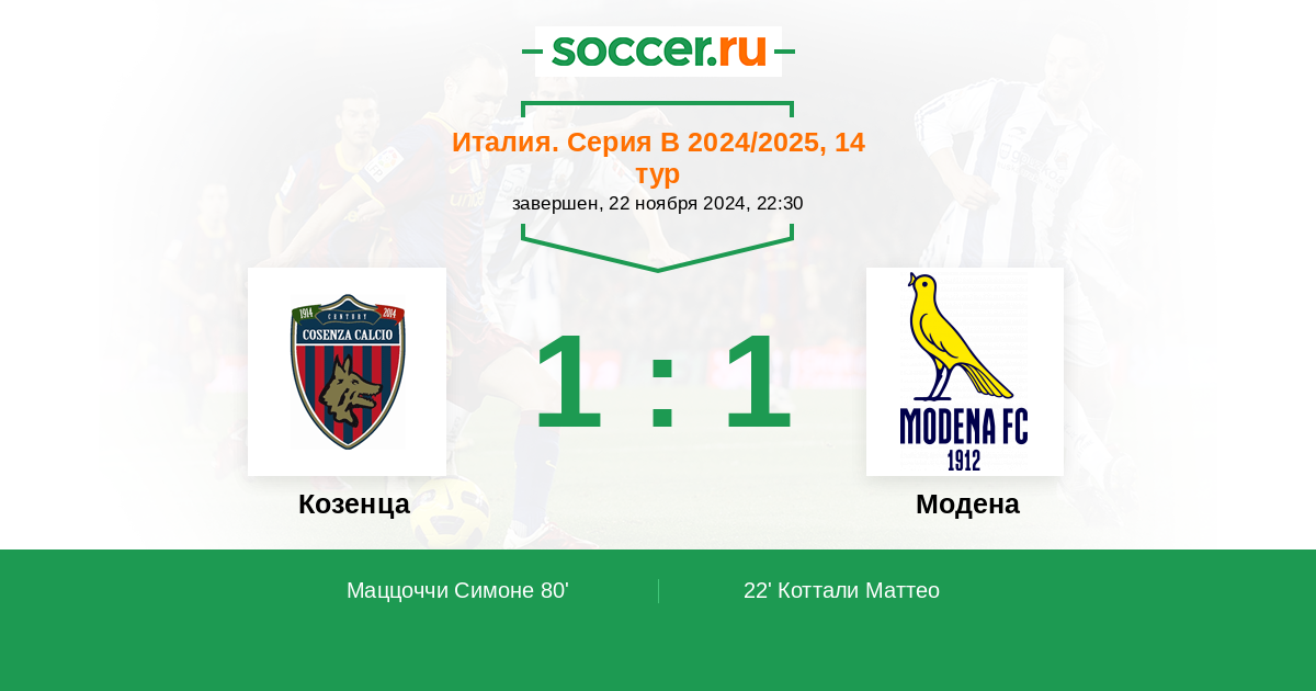 Протокол матча Козенца против Модена