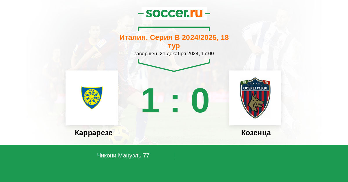 Протокол матча Каррарезе против Козенца