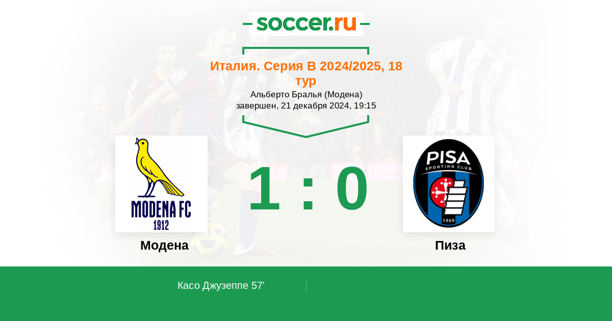 Протокол матча Модена против Пиза