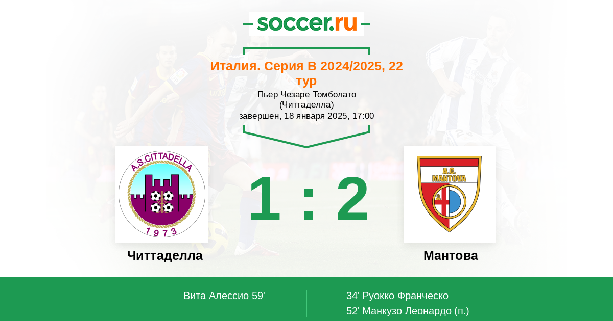 59' (1:2) Вита Алессио (16) (Маскианджело Эдоардо (32))
