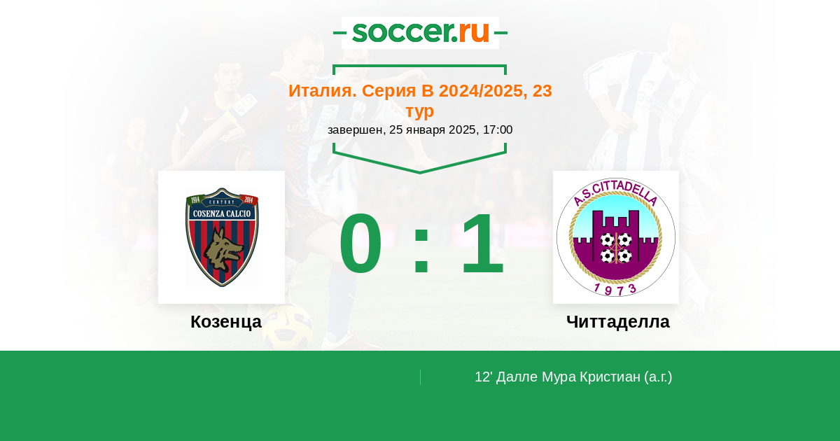 Протокол матча Козенца против Читтаделла