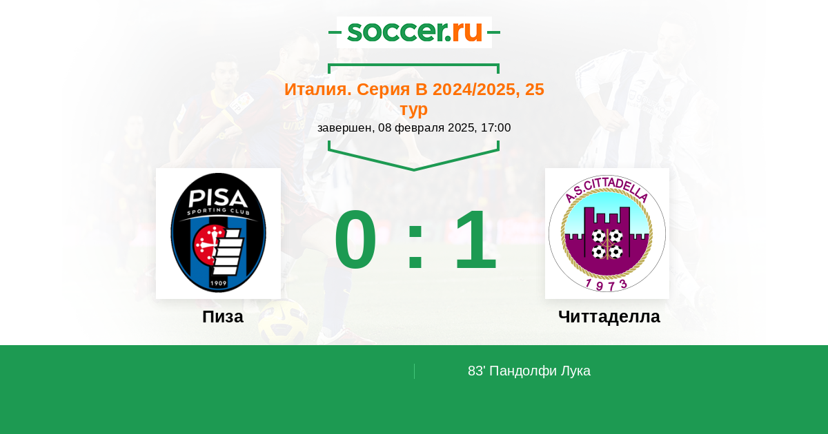 Протокол матча Пиза против Читтаделла