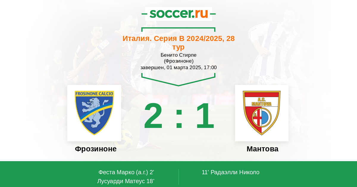 Протокол матча Фрозиноне против Мантова