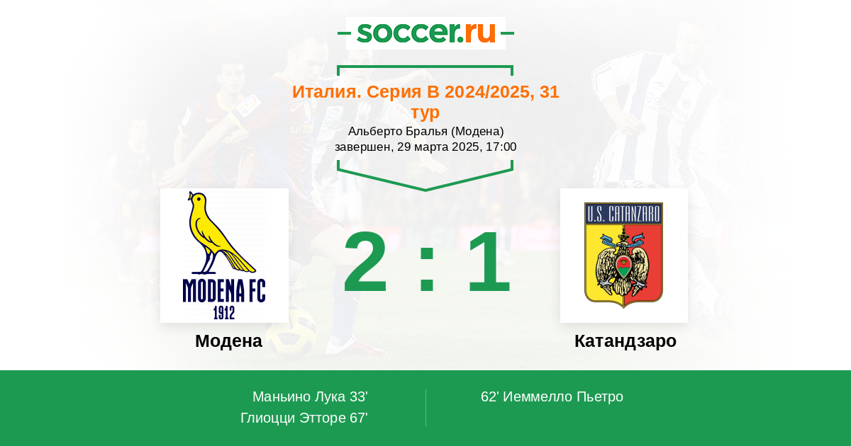 67' (2:1) Глиоцци Этторе (9) (Палумбо Антонио (10))