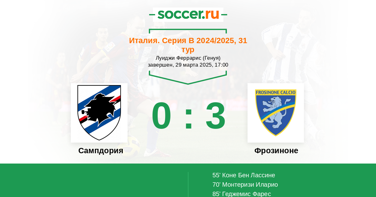 Протокол матча Сампдория против Фрозиноне