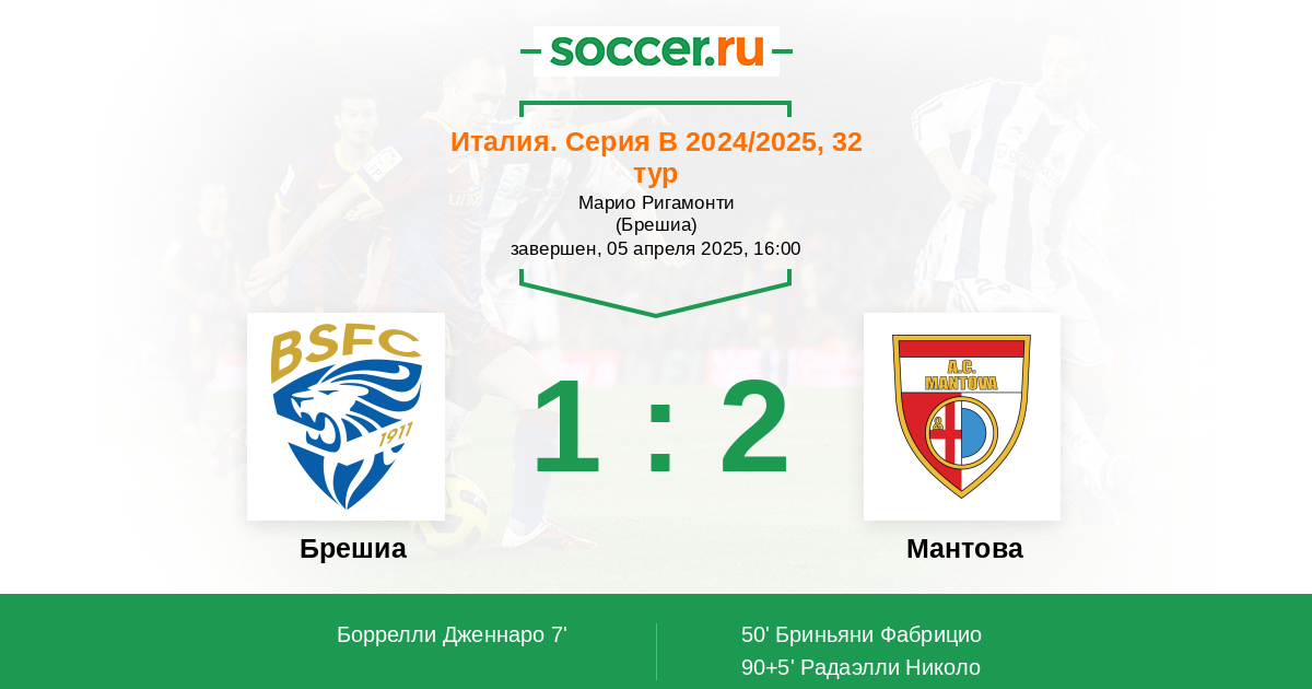 7' (1:0) Боррелли Дженнаро (29) (Коррадо Никколо (19))