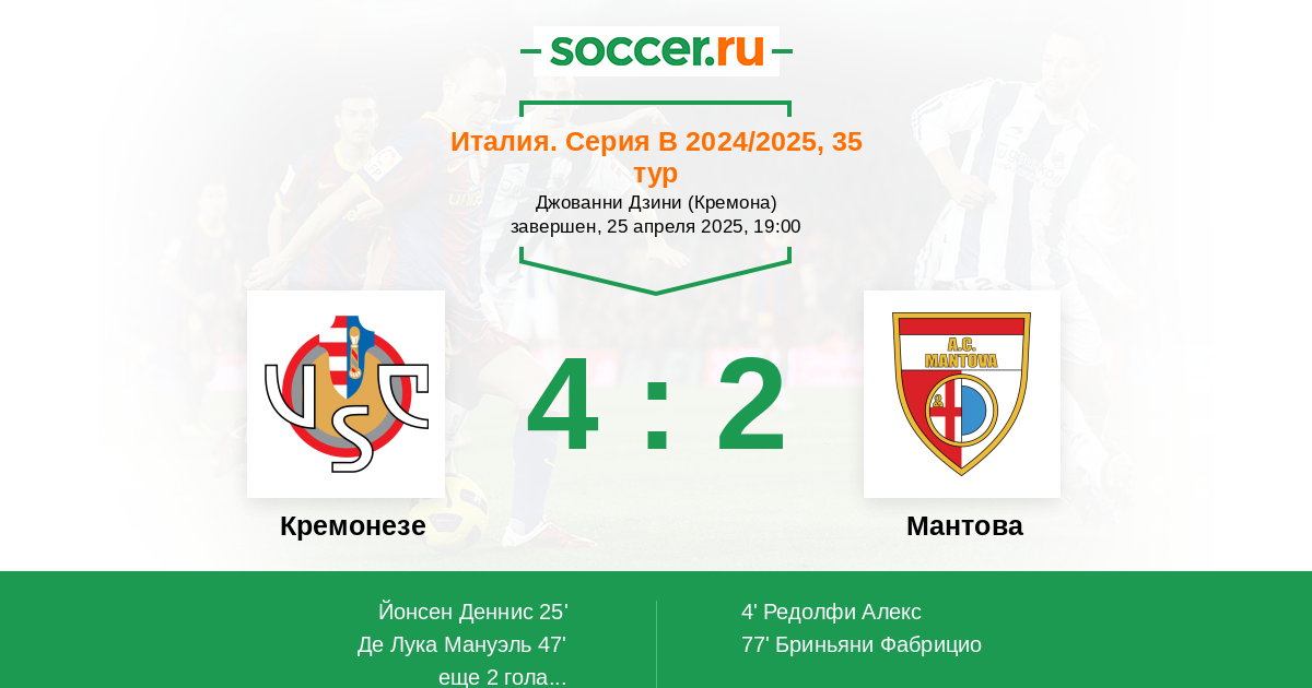 25' (1:1) Йонсен Деннис (11) (Дзанимаккья Лука (98))
