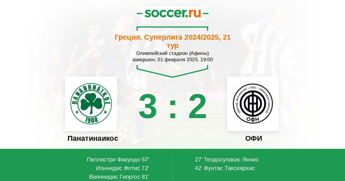 81' (3:2) Ваяннидис Гиоргос (2) (Тете (10))