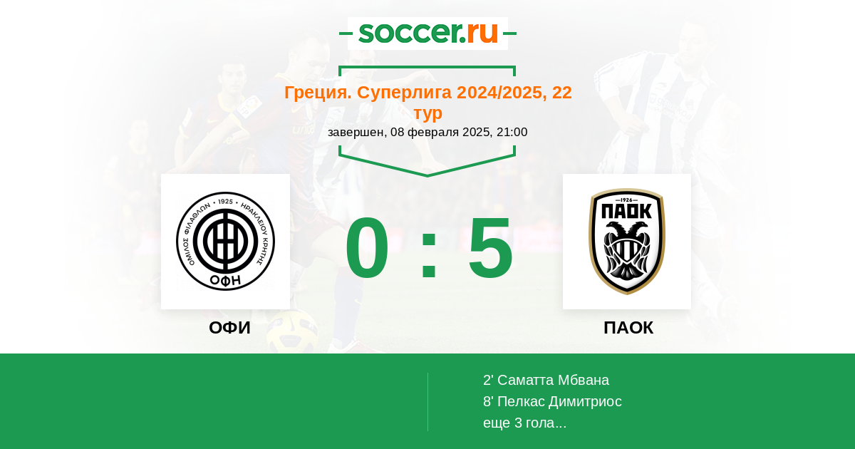 67' (0:5) Саматта Мбвана (70) (Пелкас Димитриос (80))