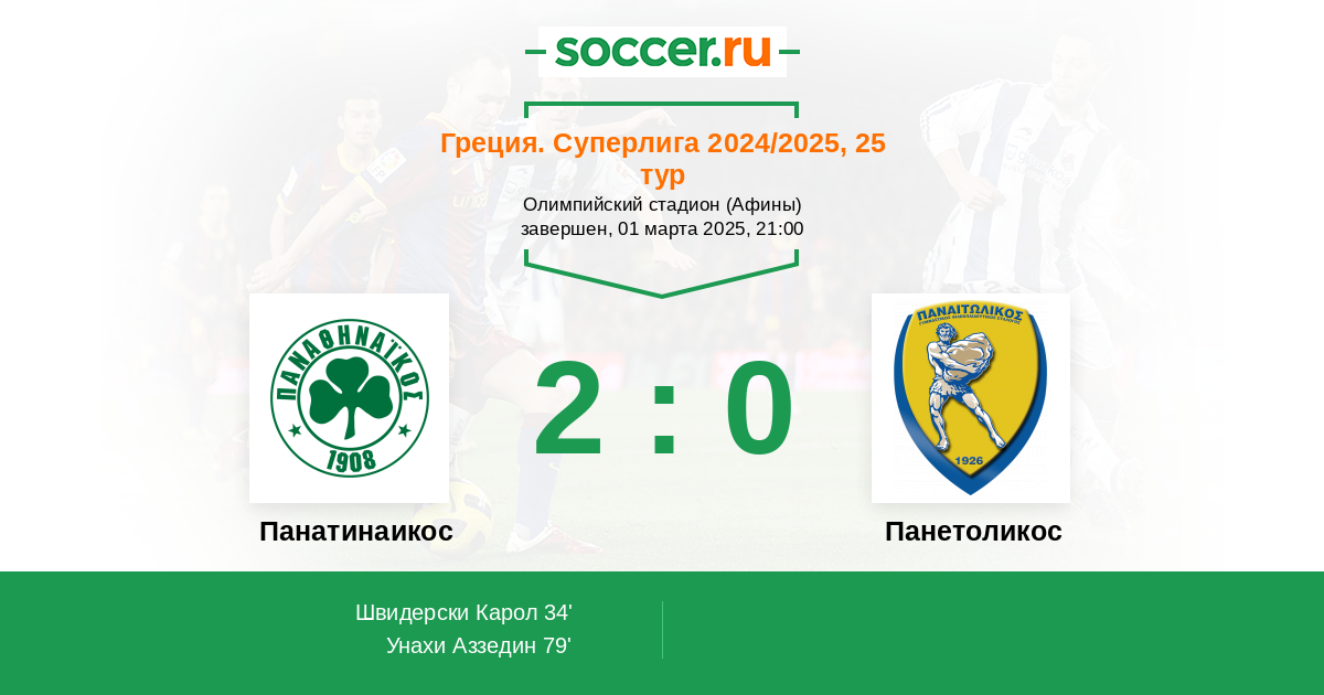 Протокол матча Панатинаикос против Панетоликос