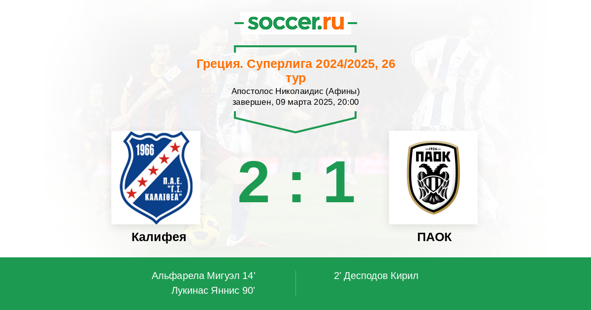 Протокол матча Калифея против ПАОК