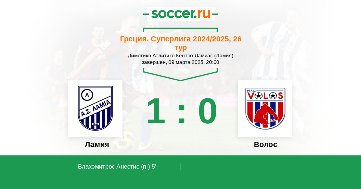 Протокол матча Ламия против Волос
