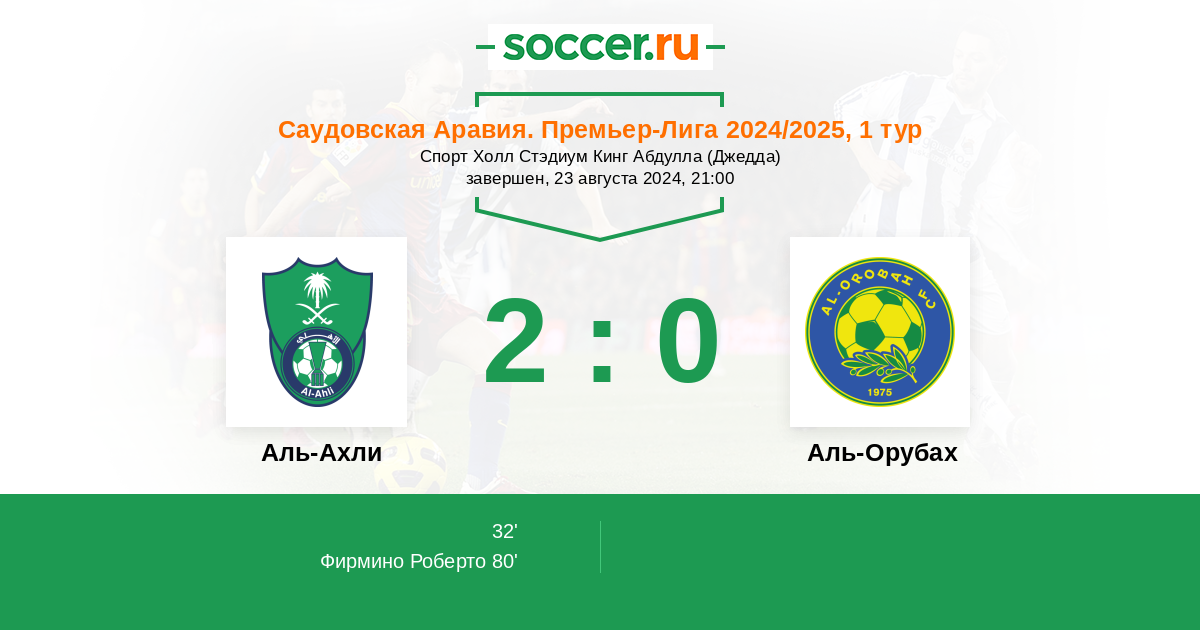 Протокол матча Аль-Ахли против Аль-Оруба