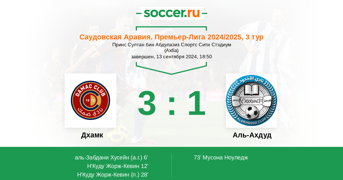 6' (1:0) Автогол аль-Забдани Хусейн (8)