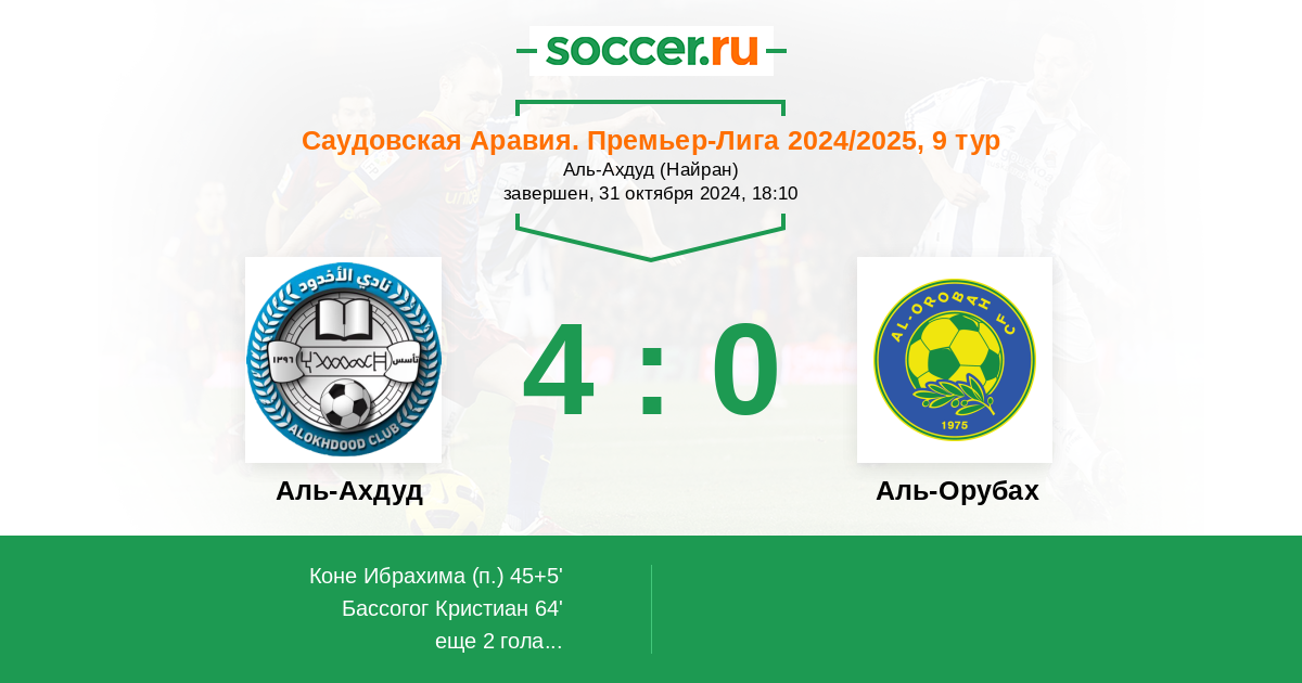 Протокол матча Аль-Ахдуд против Аль-Оруба