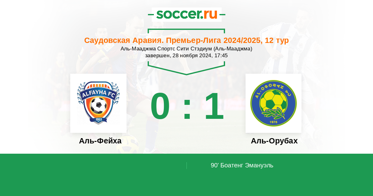 Протокол матча Аль-Фейха против Аль-Оруба
