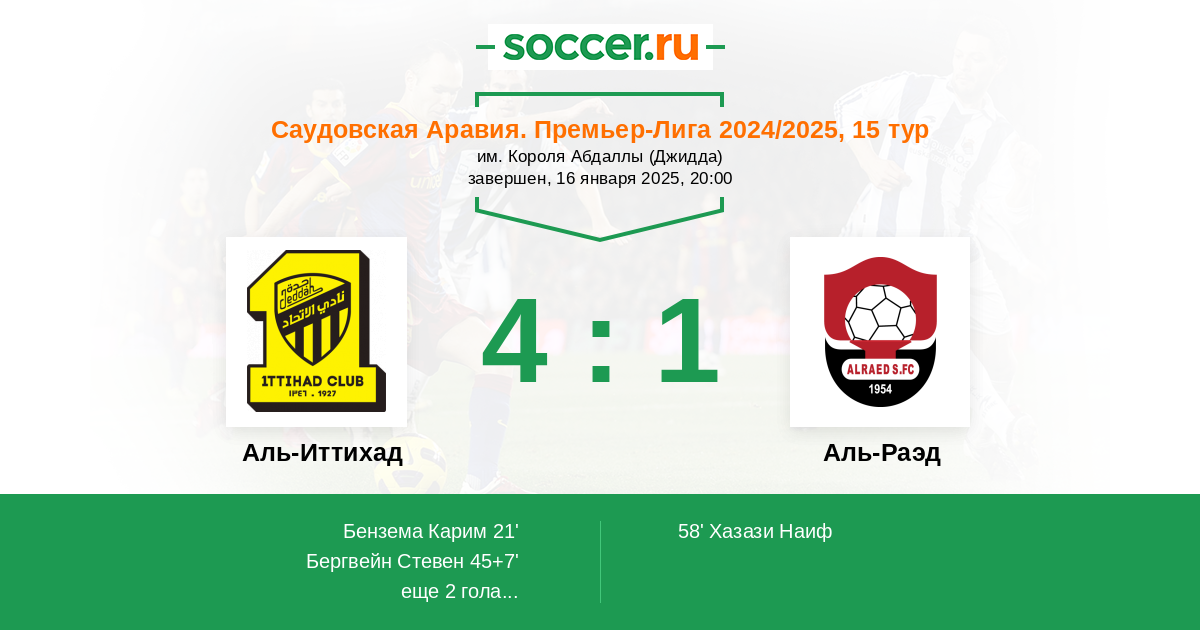 Аль-Раед неплохо выступает в чемпионате и занимает место в середине таблицы, однако сейчас близка к зоне вылета. Для обоих клубов эта встреча играет большую роль, однако класс хозяев на порядок выше.