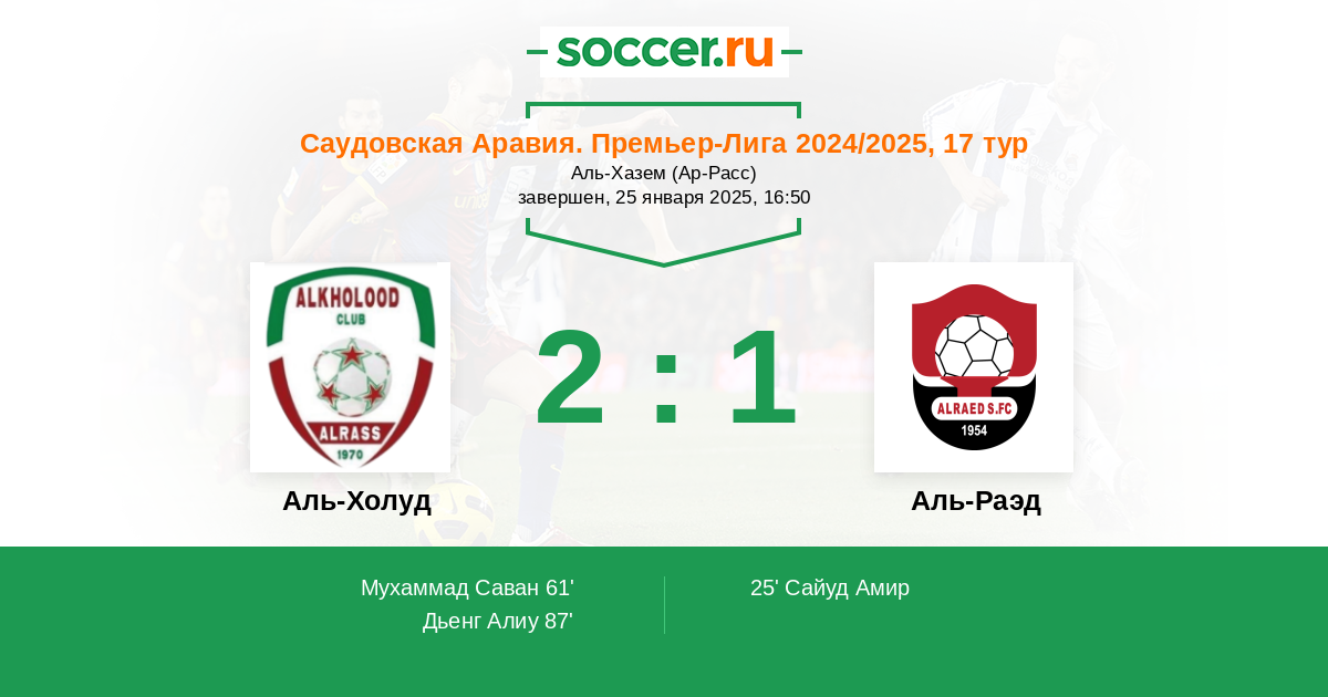 Протокол матча Аль-Холуд против Аль-Раэд