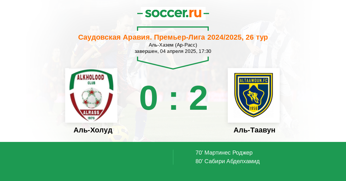 Протокол матча Аль-Холуд против Аль-Таавун