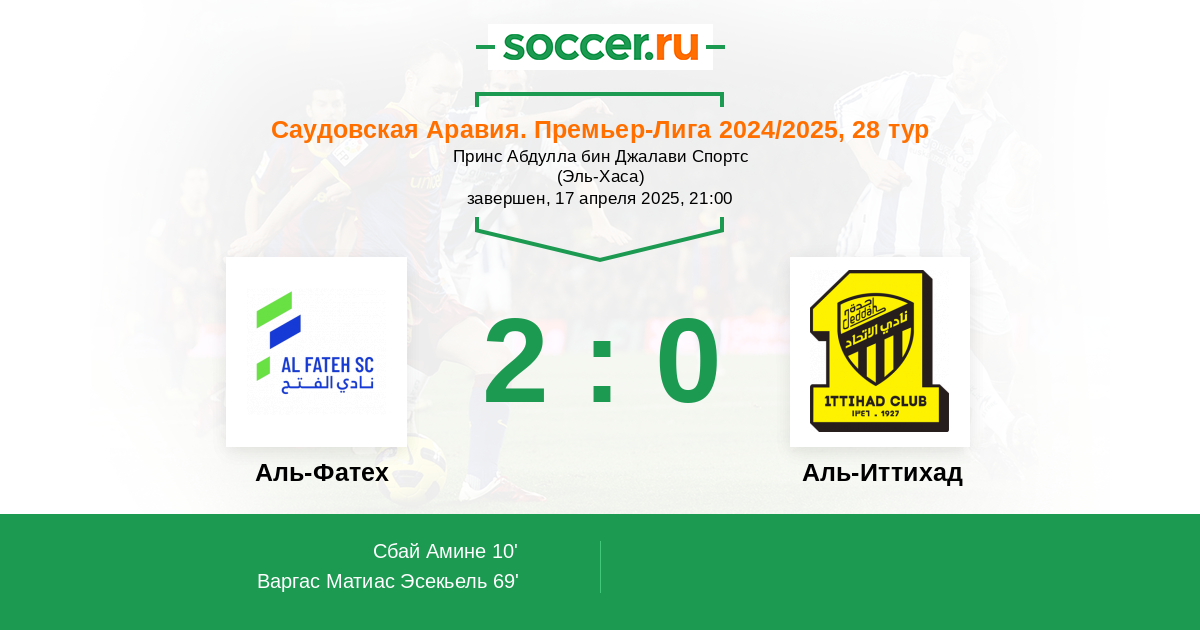 Протокол матча Аль-Фатех против Аль-Иттихад