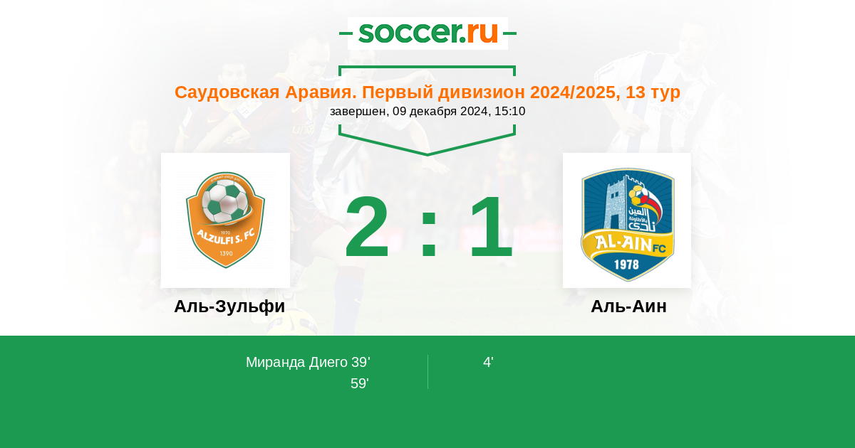 Протокол матча Аль-Зульфи против Аль-Аин