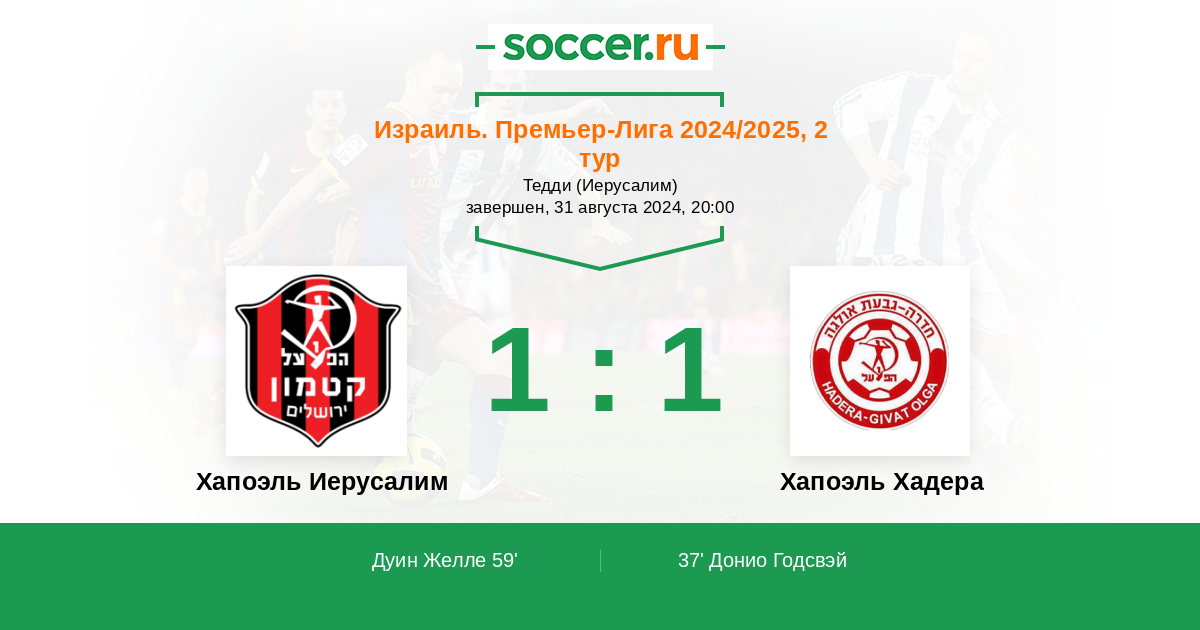 Протокол матча Хапоэль Иерусалим против Хапоэль Хадера
