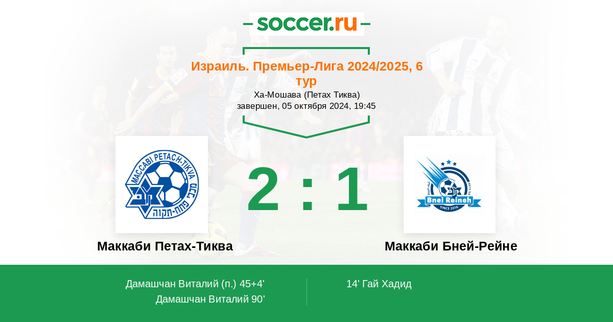 Протокол матча Маккаби Петах-Тиква против Маккаби Бней-Рейне