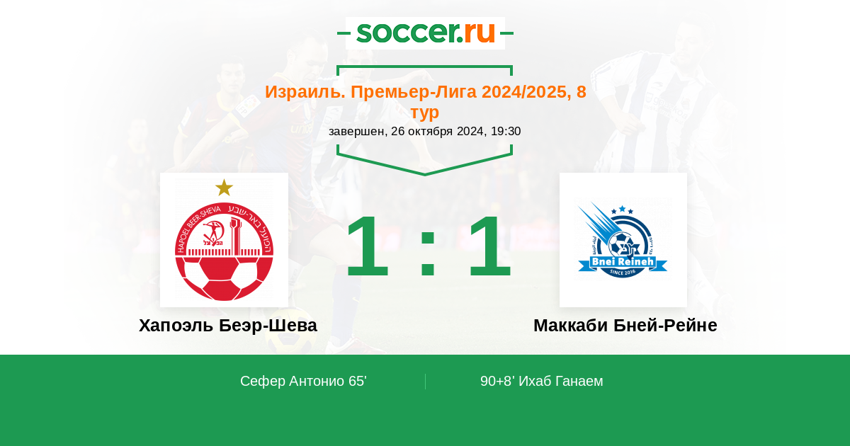Протокол матча Хапоэль Беэр-Шева против Маккаби Бней-Рейне
