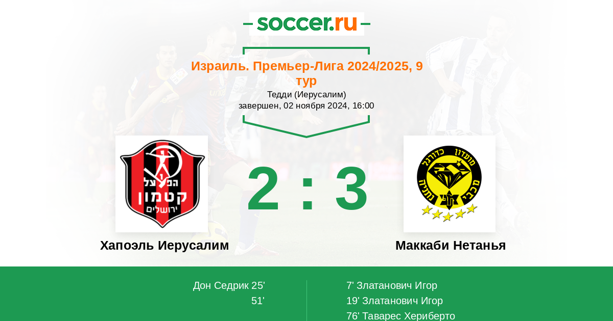 Протокол матча Хапоэль Иерусалим против Маккаби Нетанья