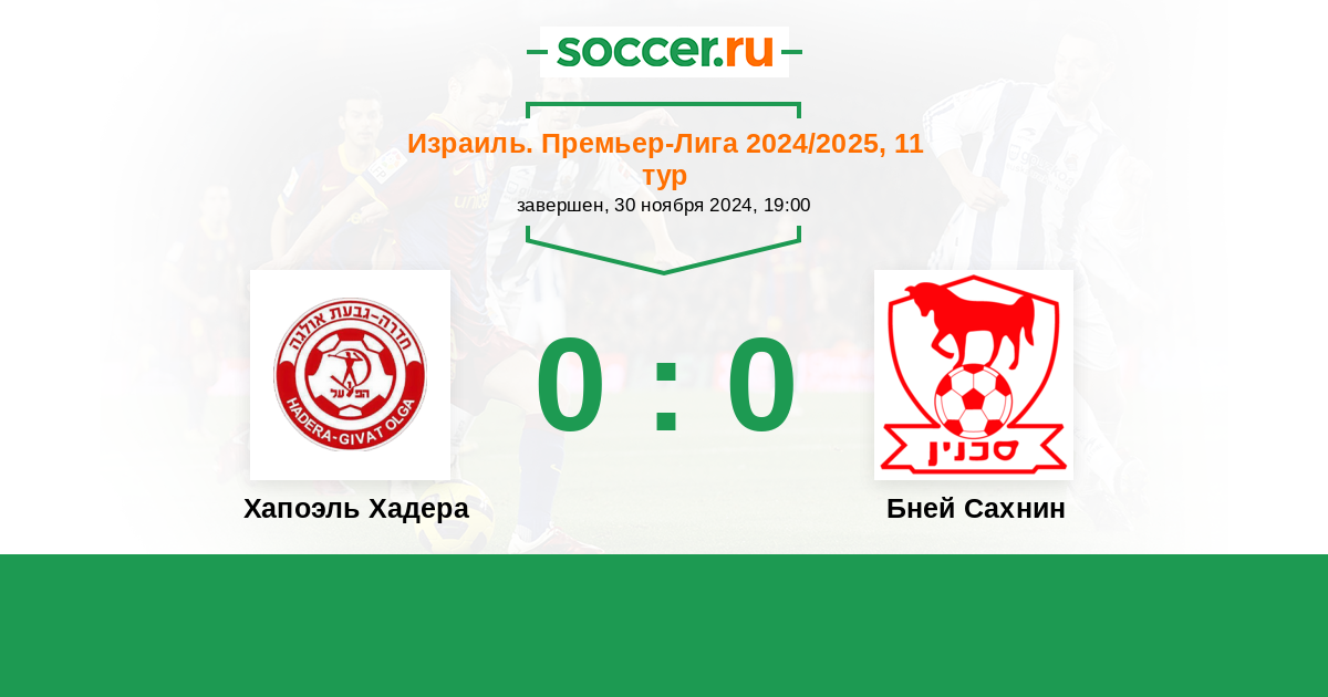 Протокол матча Хапоэль Хадера против Бней Сахнин